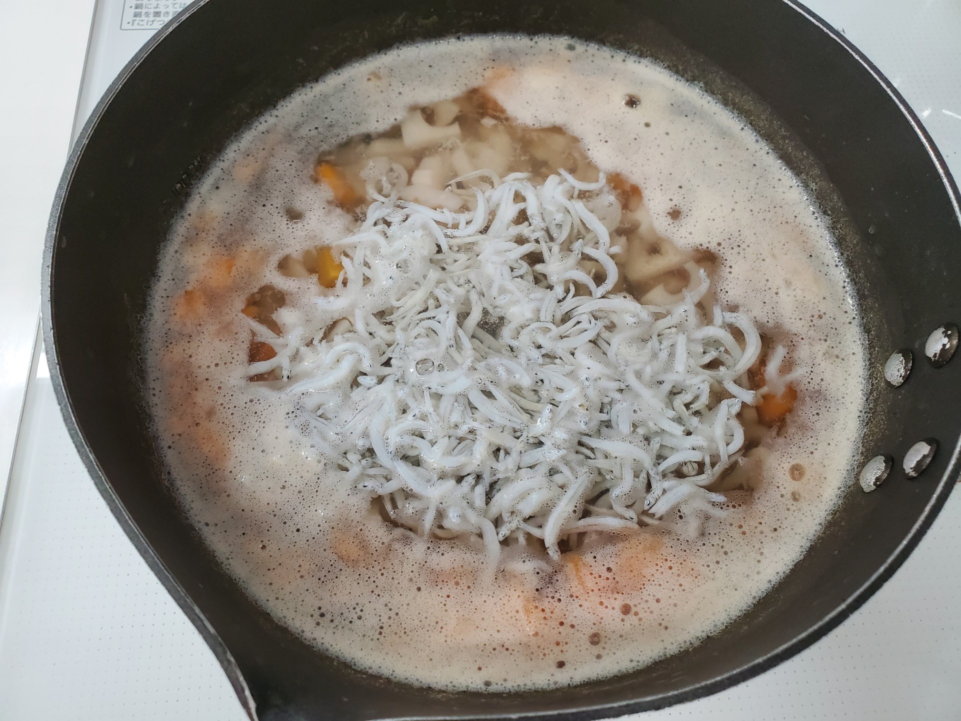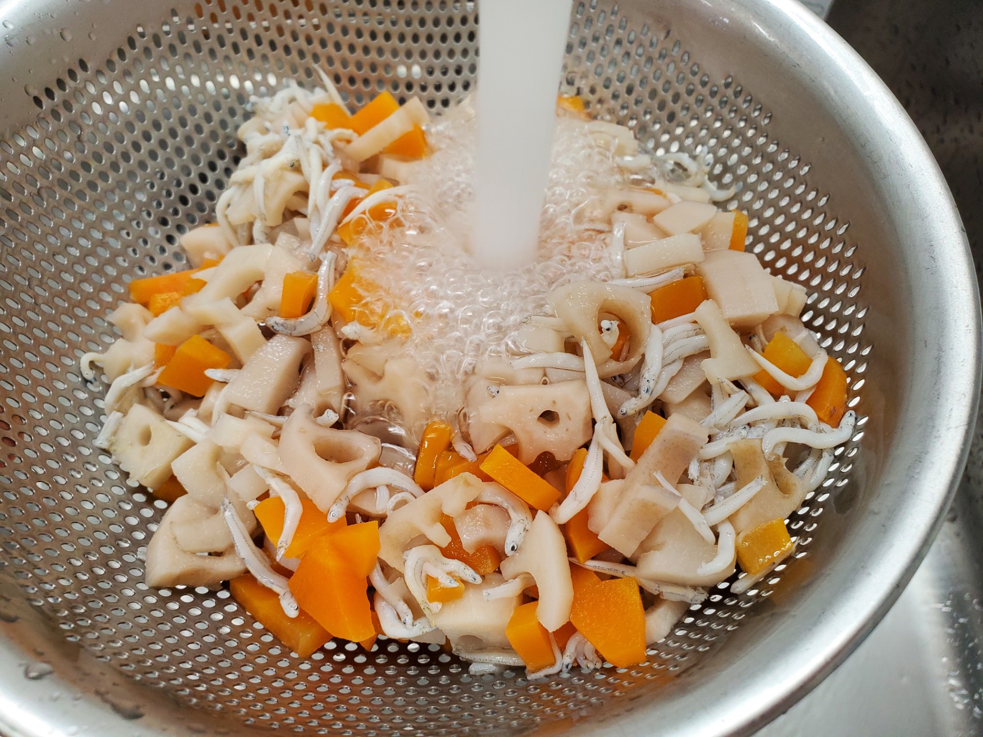 レンコンとしらすの和風サラダ PDF 印刷 コース:主食 材料 れんこん150gしらす50g人参50g砂糖5g(小さじ1)醤油10g(大さじ1) 作り方 ①人参、れんこんをいちょう切りする。②人参、れんこんから茹で、 柔らかくなったらしらすを入れて茹でる。 ざるにあげ流水で冷却する。③軽く絞って水気を切り、調味料を入れて和える。④お皿に盛り付けて、完成。 投稿ナビゲーション 前の記事ココアケーキ次の記事鮭の胡麻みそ焼き 2021年4月5日 nukumori_master 主食