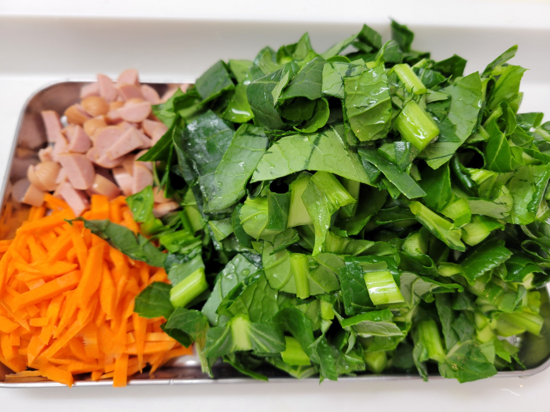 小松菜のソテー PDF 印刷 炒めるだけであっという間!栄養豊富な簡単副菜です コース:副菜 調理時間:10分 材料 (10人前) 小松菜300g人参50gウインナー100g醤油10g油5g 作り方 ①人参を千切り、小松菜をざく切り、ウインナーを半月切りにする。 (人参はレンジで加熱しておくと時短になる)②フライパンに油をひき、人参を入れ炒める。人参に火が通ったら他の食材も入れ③火が通ったら味付けをし、お皿に盛り付けて完成。※離乳食はだし汁で煮る 投稿ナビゲーション 前の記事グラタン次の記事きつねおにぎり 2024年8月22日 nukumori_master 副菜