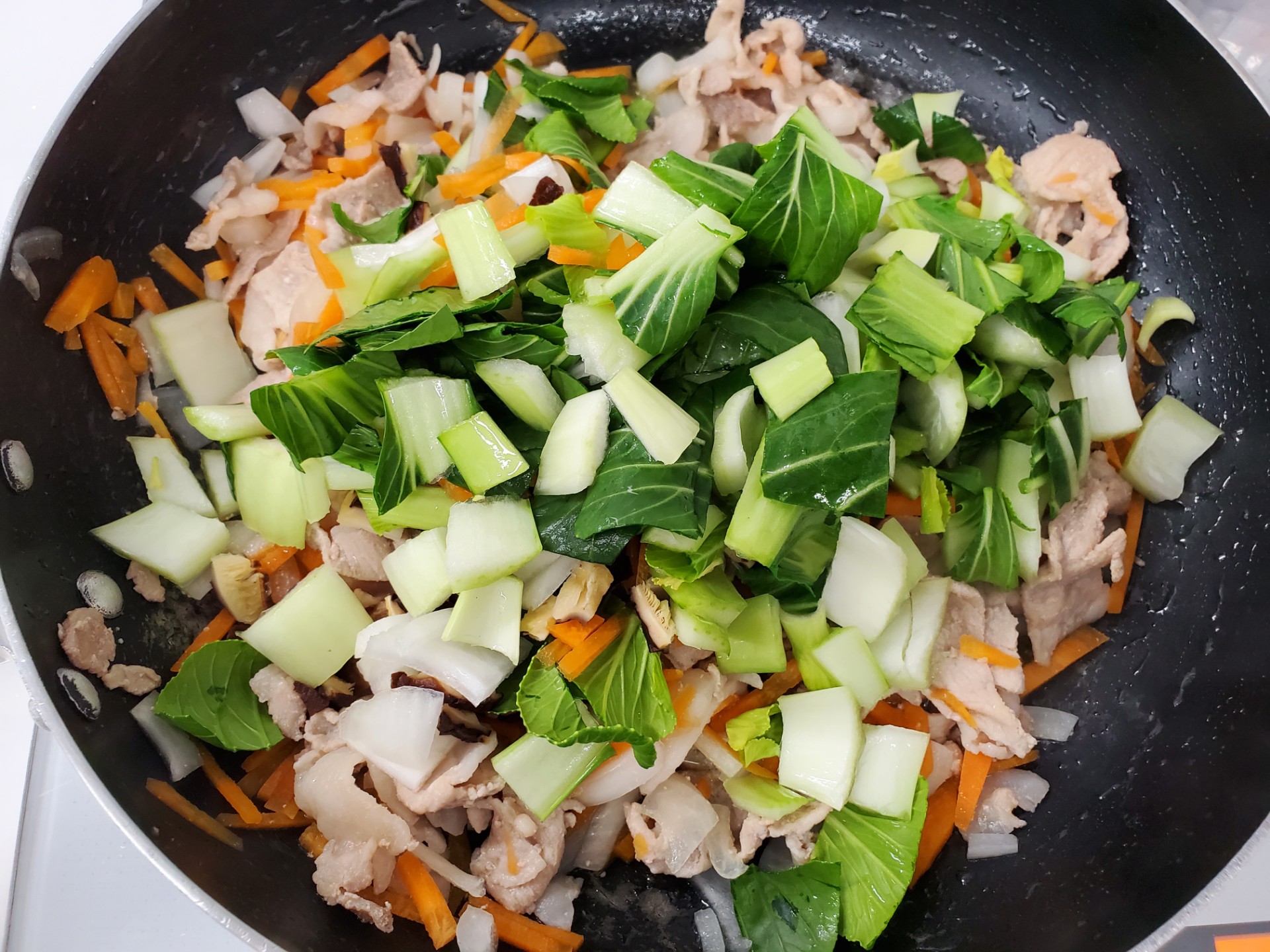 中華丼 PDF 印刷 栄養満点の具だくさん中華丼。 コース:丼 材料 米500g豚肉200g玉ねぎ100g人参100gチンゲン菜orほうれん草300gもやし100g干シイタケ5g鶏ガラスープ5g醤油10g水適片栗粉適 作り方 ①豚肉1cm、玉ねぎ短冊1cm、もやしは1cm幅、人参は短冊切り、チンゲン菜orほうれん草は茹でて1cm幅に。干シイタケはぬるま湯で戻し、薄切りする。②フライパンまたは鍋に豚肉を入れて炒める。③人参、玉ねぎ、もやしを炒め、干シイタケ、チンゲン菜の茎を炒める。④野菜に軽く火が通ったら、水を加え少し煮て、チンゲン菜の葉orほうれん草を入れる。⑤調味料を入れて味を整えたら、水溶き片栗粉でとろみをつける。⑥炊けたご飯にかけ、完成。※離乳食は調味料を入れる前に取り分けて、だし汁で炊いてお粥に 投稿ナビゲーション 前の記事小松菜とツナのみそおにぎり次の記事チンゲン菜のナムル 2024年8月29日 nukumori_master 丼