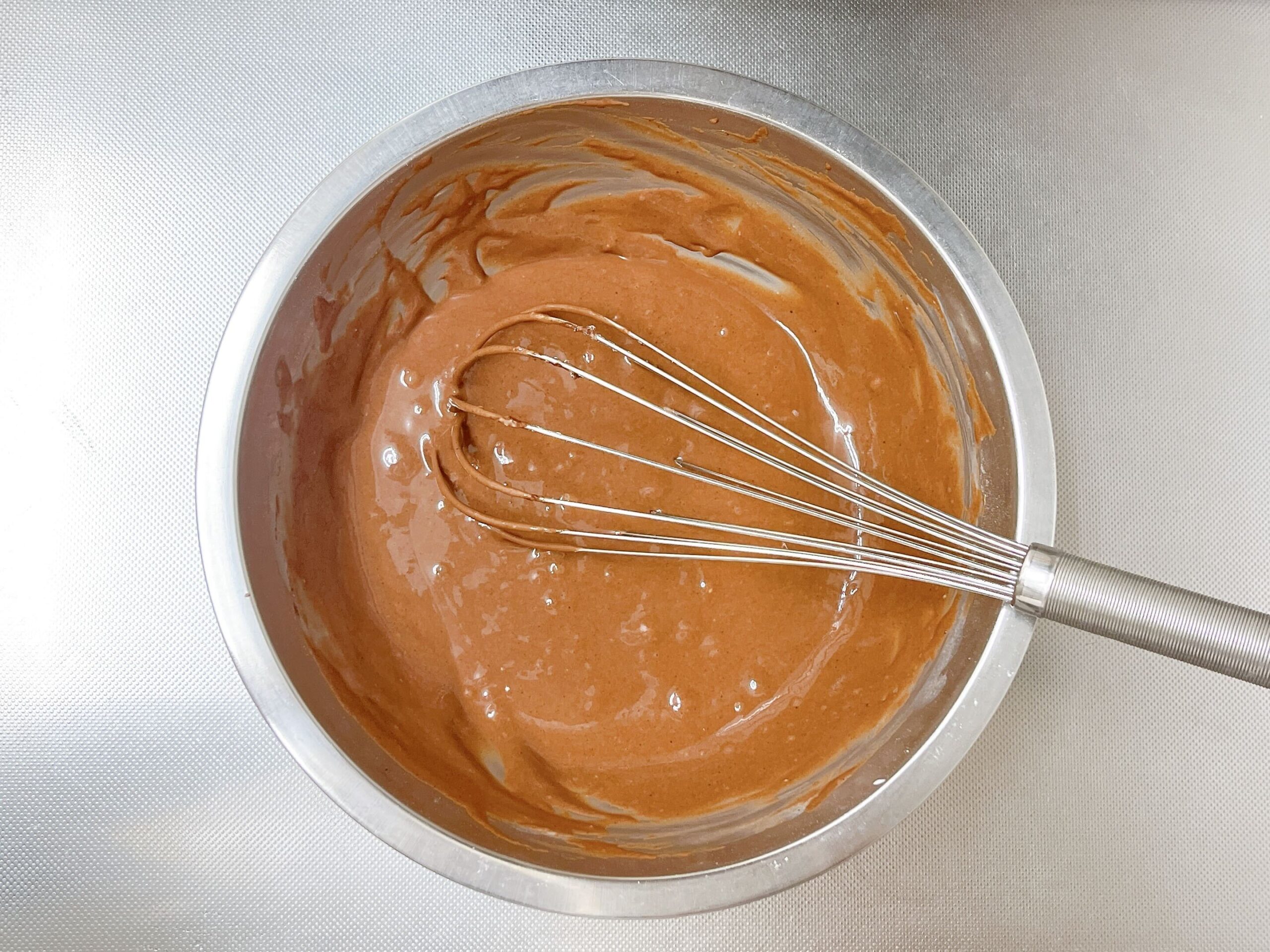 | ②うすく油をひいたフライパンに生地を流し、蓋をして蒸し焼きにする。生地は焼けたら粗熱をとる。 | ![]() ![]() |
